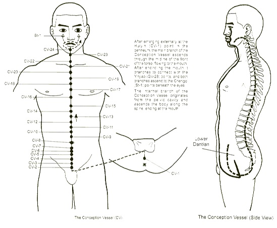 The master point for the Ren meridian is Lung 7, which is coupled with Kidney 6, on the yin qiao maichannel. The Conception Vessel relates to responsibility for, or fostering of, the process of birth, whether it be that of a child, a creative idea, or an endeavor.